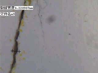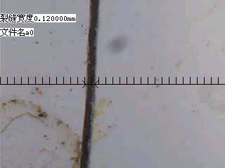 裂縫,即可在液晶顯示屏上看到被放大的裂縫圖像,微調探頭使裂縫與電子刻度標尺基本垂直,根據裂縫所占刻度